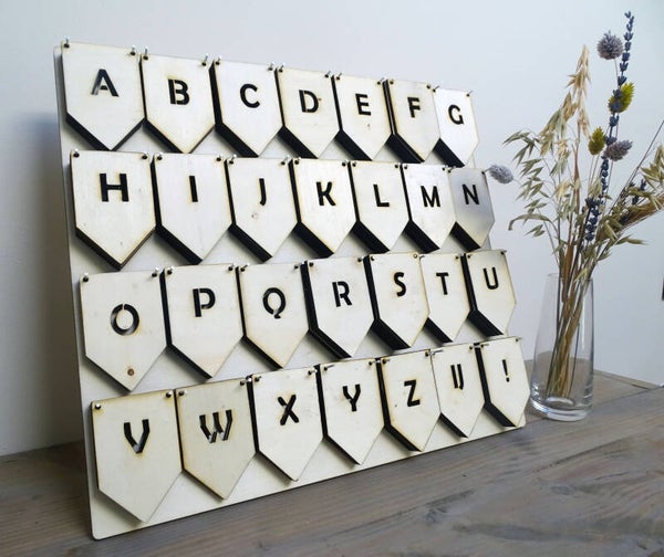 Stel jouw eigen naamslinger samen. Dit kan met symbolen, maar ook zonder. De vlaggetjes zijn 8,5 cm bij 5 cm en worden geleverd inclusief zwart touw.